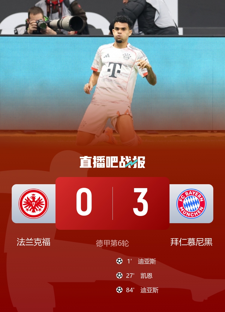 Bayern đã thắng 3-0 Frankfurt và dẫn đầu với 4 điểm khi bắt đầu trò chơi. Louis Diaz đã thực hiện hai cú đánh và một lần từ Kane ghi được
